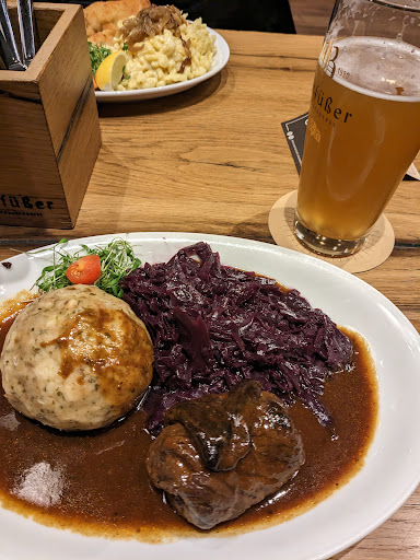 Read moreExcellent! If you are willing to eat in a modern yet delightful restaurant in Ulm, I recommend this one. How great the food is here. We had Haxentopf and Schweinshaxen, both dishes really delicious, well seasoned and abundant. The beer is great. Like most German beers, is really easy to drink and enjoyable while you do so. For dessert I tried the Apfelstrudel, I think the best I've ever tried, I can't stress it enough, really fine (and warm) pastry accompanied by both vanilla ice and whipped cream. I simply love apple's pastrys😍 The service is also remarkable, very nice...