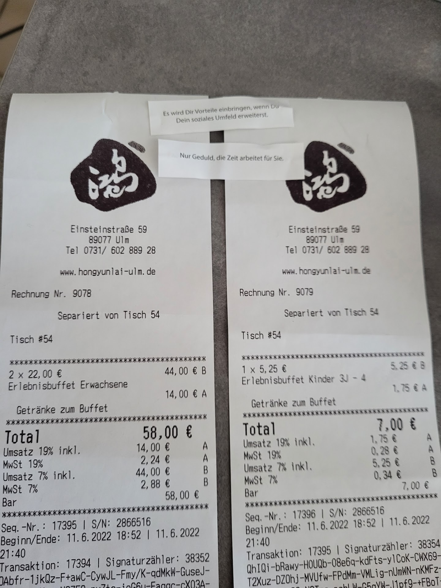 Der Kellner für unseren Tisch kam erst am Ende und schrieb auf, wie viele Erwachsene und Kinder da waren. Auch ärgerlich, da wir unserer Meinung nach alle Regeln befolgten, die sie aufgestellt hatten (für das Mittagsbuffet), nämlich das Mittagessen bis 14:30 Uhr zu beenden und nicht unbegrenzt Bier und Getränke zu nehmen, aber wir mussten am Ende trotzdem den vollen Preis für das "Erlebnisbuffet" bezahlen.