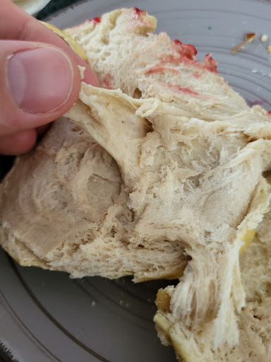 Leider ist es keine Seltenheit mehr, bei der Bäckerei Kirsamer miserable Ware zu bekommen. Die Brezeln, Laugenstangen und Laugenbrezeln sind oft noch teigig und sehr hell. Heute wurde der Vogel allerdings abgeschossen, als wir uns ein paar Laugenwecken geholt haben. Diese waren überhaupt nicht durchgebacken, es war noch der rohe Teig (siehe Fotos).