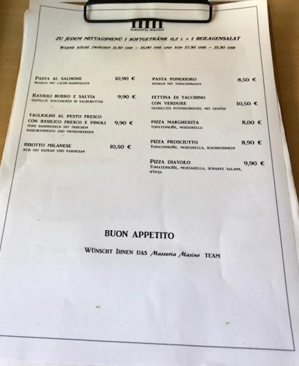 Samstag 20.07 haben wir den Entschluss gefasst auf das Ulmer Fest zu gehen. Da wir die viele positiven Bewertungen gesehen haben und der Standort für uns günstig gelegen schien, haben wir uns für das Restaurant Namens Masseria Masino entschieden. Wir hatten einen Tisch reserviert. Doch bei unserer Ankunft stand dieser noch nicht zur Verfügung. Da in diesem Restaurant anscheinend alles auf Selbstbedienung hinausläuft, sind wir zum Thresen vor um unsere Bestellung aufzugeben. Während wir die in der Auslage stehenden Lebensmittel begutachtet haben, haben wir eine erschreckende Feststellung gemacht: Eine der Service-Damen lief hinter dem Thresen Barfuß herum! Zu diesem Zeitpunkt wollte ich eigentlich bereits wieder gehen, jedoch haben mich meine Freunde davon überzeugt zu bleiben. Letztlich haben wir uns für verschiedene Vorspeisen entschieden. Hierbei handelte es sich um verschiedenes Gemüse, sowie verschiedene Käsesorten und eine Flasche Wein. Leider hat jedoch die Dame, welche für diese Vorspeisen zuständig ist, es bevorzugt zuvor Gäste zu bedienen, die erst einige Zeit NACH uns ankamen. Nachdem sie es schließlich für Nötig hielt unsere Bestellung zu bearbeiten, hat die gute Frau mindestens eine halbe Stunde für die Zubereitung benötigt - in der Zwischenzeit waren sogar die Gäste welche nach uns kamen bereits wieder fertig. Dadurch, dass das Ganze in einer Vitrine zubereitet wurde, haben wir beobachten können, wie sich die zubereitende Person nicht einmal die Hände gewaschen hat, während sie von Wurst/Aufschnitt, zu Käse, zu Brot und zur Kasse wechselte, um ihrer Kollegin zu helfen. Von der Portiongröße wollen wir garnicht erst anfangen! 14.50.-€ für zwei nahezu durchsichtigen Schinkenscheiben, 3 Scheiben Salami, 1 Scheibe Speck/Pancetta, und ein paar miniaturartigen Käsekrümel, welche auch noch schlecht geschnitten wurden sowie ein paar Oliven. So gesehen ist dieser Preis schon Wucher, da es auch noch obendrein alles auf Selbstbedienung ist. In der Zwischenzeit hat sich die barfüßige Dame an einen Tisch zu einem Kollegen gesetzt und haben sich unterhalten und geraucht - mittlerweile war sie zwar nicht mehr barfüßig sondern hatte rosa farbenen Badepantinen an. Dies alles während Kundschaft darauf wartete, dass zumindest die Tische abgeräumt werden würden. Nachdem die beiden Mitarbeiter vom Rauchen wieder herein kamen, haben auch diese sich nicht mehr die Hände gewaschen. Also in Zusammenfassung mit Schulnoten: Hygiene 6, Freundlichkeit 6, Portiongröße 5. Dies war garantier ein einmaliger Besuch...
