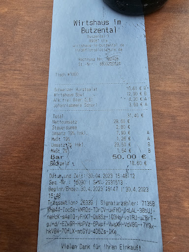 Insgesamt hat das Wirtshaus im Butzental sicher Potenzial und punktet mit einer guten Bierauswahl und frischen Beilagen, doch am Service und der Konsistenz in der Küche könnte noch...