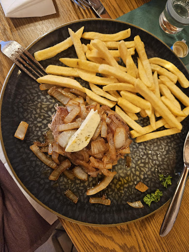 Read moreOh man, die Portionen sind groß, so richtige "Männer Potionen". Salat kann man sich vom Buffet nehmen. Schnitzel mit Championssoße und Pommes sehr groß 19,50€. Die Preise sind für ein Schnitzel schon recht hoch ( aber die ganzen Kosten sind ja auch gestiegen und werden demzufolge umgelegt). Mein Mann hatte sich das vorletzte mal das Nackensteak 350gr, Kräuterbutter mit Zwiebeln, Schinkenspeck und Pommes gegönnt. Leider gibt es das Nackensteak nicht mehr auf der Karte. Schade! Nackensteak zart und richtig lecker. Man kann zwischen Kroketten und Pommes wählen. Personal super freundlich, zuvorkommend, der Koch hat auch gefragt, ob alles in Ordnung ist. Alles sehr sauber und wir haben uns rund um wohl gefühlt. Parkplätze vom Restaurant. Am WE lieber Tisch reservieren. Vielen Dank und wir kommen sehr...