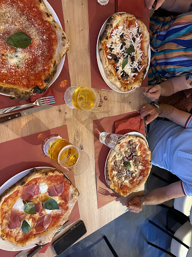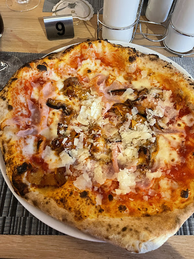 Als Hauptspeisen gab es Pizza aus dem Holzofen und Rumpsteak, das medium rare perfekt auf den Punkt zubereitet war. Die Pizzen waren herrlich knusprig und belegt mit hochwertigen Zutaten. Besonders lobenswert ist, dass das Restaurant auf die Wünsche unserer Gruppe eingegangen ist: Vier von uns essen kein Schweinefleisch, und trotzdem war die Auswahl großartig und kreativ.