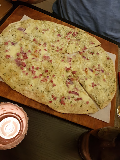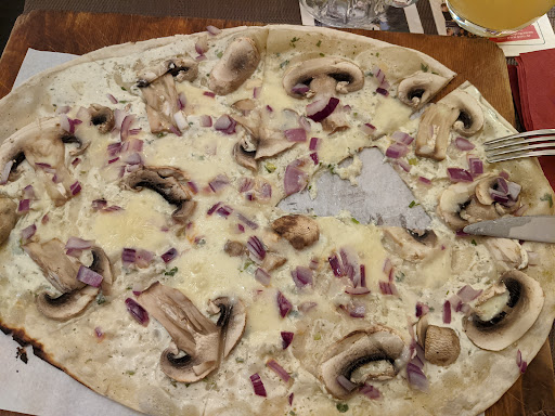 Read moreWir waren am Sonntag Abend zu gast in diesem Restaurant. Die Begrüßung war freundlich es war nicht viel los und bis zur Bestellung verlief alles durchaus angenehm. Wir bestellten zwei klassische Elsässer Flammkuchen. Bekommen haben wir dann zwei klassische Flammkuchen mit Käse, was nicht der Bestellung entspricht. Nun unser Fehler war, dass wir schon angefangen hatten zu essen und es somit nciht retour schicken konnten/wollten. Fehler passieren nunmal. Der Flammkuchen an sich war allerdings leider auch einer der schlechtesten die ich bisher gegessen habe. Der Sauerrahm enthielt zwar "optich" Kräuter, diese waren jedoch nicht zu schmecken. Der Sauerrahm war ebenfalls nahezu neutral. Der Schinken dominierte durch massiven Salzgehalt und der Käse (welcher ja nicht gewollt war) war ebenfalls noch zu schmecken. Der boden war ansich jedoch gut und in Ordnung. Dann ging es ans bezahlen - keine Kartenzahlung möglich, angeblich Gerät defekt. Gut auch das kann passieren aber dann sollte man wohl vorher darauf hinweisen doer ein Schild aufstellen. Heutzutage erwartet man wohl eine elektronische Zahlungsmöglichkeit. Also ging es zu Fuß zum nahegelegenen Geldautomaten. Die Rechnugn betrug im übrigen 31,60 € für zwei große Saftschorlen udn zwei Flammkuchen durchaus sportlich! Die Bedienung flüchtete dann vor dem bezahlen (obwohl man gesehen wurde) also musste an hinterherlaufen... auf den Hinweis, dass man die Flammkuchen fälschlicherweise mit Käse bekommen hatte hieß es nur: " Oh das war dann ein Versehen"... okay aber dann sollte man zumindest den Mehrpreis von der Rechnugn nehmen oder? Dazu gab es dann noch verschüttete Getränke beim einschenken, was auch passieren kann. Aber sowas sollte man dann auch wieder aufwischen und nicht einfach "trocknen" lassen.