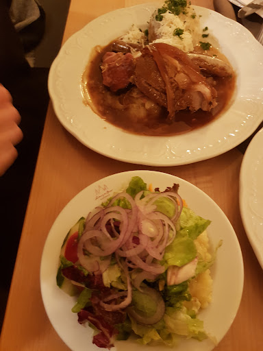 We came here without a reservation and with our dog for dinner. Although it was busy, the staff was very helpful and nice and seated us. Service was quick at this stage, we got our drinks quickly and our food quite quickly. The food was typical local, not that it was divine, but tasty and met our expectations. Wife's tafelspitz with horseradish sauce was falling apart and delicious. My pork tenderloin medallions fried in a pepper and bacon jacket in garden herb cream with colorful summer vegetables and homemade egg spätzle were also good. The meat was beautifully tender and juicy. Up to this point, everything was great and the restaurant would aspire to the highest rating of five stars. But then everything went wrong. When we finished eating, we waited and no one noticed us. The waitresses were cleaning the tables around us and setting them already for breakfast. But nobody noticed us. We waited an unbelievable half an hour to clear the dishes from the table and before someone came. We originally wanted to have dessert and some digestif, but we changed our minds. We lost our appetite. It's a pitty for us, but it's also a shame for the restaurant, because they could have made more money from us. And they could have great review. Unfortunately, this was a terrible mistake. They really spoiled...