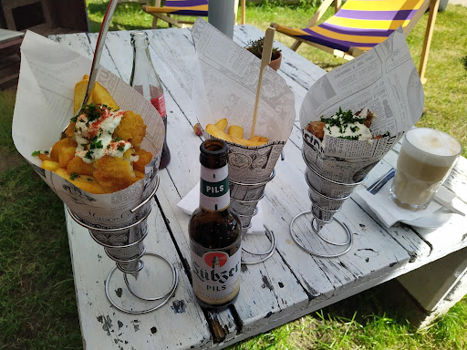 Read moreEndlich mal ein Imbiss der etwas anderen Art mit kreativ neuaufgelegten Fastfoodklassikern wie Fish and Chips und Currywurst, daneben jedoch auch ausgefallenere Ideen wie Sprotten und Calamari, alles immer frisch zubereitet und very british in der Zeitungstüte stylish serviert. Lecker, mit gemütlichen Sitzgelegenheiten (u.a. Liegestühle und Strandkörbe). Das Betreiberpaar sind Gastronomen aus Leidenschaft und mit Leib und Seele dabei. Das spürt und schmeckt man! Nicht nur gut für eine Stärkung nach einer Runde Minigolf, sondern lohnt definitiv auch einen eigenen Abstecher ins (ehemalige)...