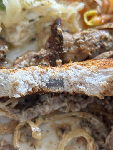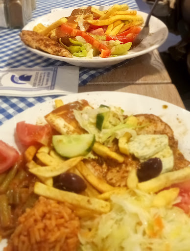 Auf das Essen warteten wir dann fast 50 Minuten, die Vorspeisen kamen dafür aber schon nach 15 Minuten. Womit wir bei der Qualität des Essens wären... Das Knoblauchbrot war eine Zumutung. Ein halbiertes längliches Aufbackbrötchen, wie man es im 4er-Pack in jedem Discounter für weniger als einen Euro findet, bestrichen mit einer am Knoblauch peripher vorbeigelaufenen Kräuterbutter für knapp 5 Euro. Das muss man erstmal bringen. Die gebackenen Peperoni mit Knoblauch für 10 Euro ertranken in einer Ölwanne, geschmacklich waren sie in Ordnung. Ein üblicherweise dazugehöriger Brotkorb (man tutsche das Öl auf) fehlte leider gänzlich. Unsere Kleiner hatte von der Kinderkarte Nudeln mit Tomatensoße (Pumuckl). Die selbst für einen Kinderteller mickrige Portion für 10 Euro sorgte nicht für Sättigung. Das Pubertier bestellte Gyros von der Kinderkarte (Micky Maus - die Gerichte von der Kinderkarte dürften gerne griechische Namen haben, aber das ist persönliches Gusto). Die Portion für ebenfalls 10 Euro war schon ergiebiger. Wir Erwachsenen bekamen Suvlaki bzw. das Gyros Spezial für 18 bzw. 20 Euro. Zu beiden Gerichten wurde als Beilage Pommes und(!) Tomatenreis sowie Krautsalat serviert. Das Fleisch des Suvlaki war in Ordnung, das Tzatziki dazu "unauffällig". Das Gyros hingegen kann nur als schwabbelige waschlappenartige Ansammlung von Fleischlumpen beschrieben werden. Dies lag jedoch nicht daran, dass es in Metaxasauce gereicht wurde (hierzu gleich mehr). Das Gyros der Kinderportion ist von gleicher Konsistenz gewesen. Derartiges ist mir noch nicht untergekommen - und unerklärlich. Die "Metaxa-Sauce" stellte sich als ähnliche Frechheit heraus. Geschmacklich eher die japanische Reiswaffel unter den Saucen, riecht nach nichts, schmeckt nach nichts, steht für nichts - einziger Unterschied: macht im Vergleich fett. Stichwort Fett, die Soße kam primär ölig daher. Abschließend zu den Beilagen. Der Krautsalat war überwiegend geschmacksbefreit, die Pommes eine äußerst labbrige Angelegenheit. Als absoluter Knaller stellte sich jedoch der Tomatenreis heraus. Ein kleines rötliches Häufchen zwischen den Pommes, in der Größe ungefähr so, als hätte man eine kleine Dipp-Schale damit befüllt, glatt abgestrichen und dann umgedreht. In Konsistenz und Geschmack ähnelte der Reis äußerst verblüffend einem Fertigprodukt vom guten alten Uncle Ben's (darf ich das überhaupt noch so schreiben? 🤔). Der Service war mäßig, der einzige Ouzo am Schluss katastrophal. Betreiber sind keine...
