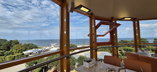 Read moreNovember 2023 Ich hatte online über die Homepage 2 Plätze reserviert, nur ist das totaler Quatsch. Interessiert niemanden vor Ort. Dazu kommt, dass nur zu jeder vollen Stunde der Lift nach oben fährt. Das steht nirgends auf der Homepage und im Kontaktformular zur Reservierung ebenfalls keinen Hinweis. Pro Person werden 5 Euro Auffahrt berechnet. Schon etwas happig. Zu unserer Zeit war es recht leer, im Sommer will ich hier aber nicht anstehen. Wir hatten hier Kaffee/Kuchen. War nicht aufregend, aber okay. Der junge Mann, der die Gondel bediente, gab uns interessante Infos über Zinnowitz, der Ausblick ist ganz nett. Viele Plätze gab es hier nicht, alles Vierertische (ich würde sagen, maximal 5/6 Tische). Vom Service der Bedienung bis hin zur Erklärung alles super. Toilette nur unten am Boden, nicht in der Gondel. Sogar gratis, das Drehkreuz war durchgehend offen (vielleicht ist es aber im Sommer anders). Fazit: Kann man machen, man verpaßt aber auch nichts. Vielleicht eher zum...