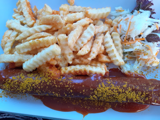Für uns war es finanziell die günstigere Option hier zu essen, statt immer nur in preisintensiveren Gaststätten. Pommi's Tischlein deck dich bietet bis abends warmes Essen und das haben wir genutzt. Gesundes Essen mit Kartoffeln und Gemüse fanden wir zwar leider nicht, aber ein paar Tage geht es schon mal mit Fast Food. Das fanden wir dafür hier aber auch lecker. Die Pommes waren sehr gut gewürzt und schön knusprig. Auch Schnitzel, Currywurst und Bratkartoffeln fanden wir sehr lecker. Es gibt auch ein Tagesangebot, das immer mal wechselt. Während unserer Urlaubswoche gab es einmal Schnitzel mit Letscho und zwei Tage hintereinander Fischteller. Die Portionen sind ausreichend und eine kleine Beilage Krautsalat war immer mit auf dem Teller. Preislich liegen die Gerichte bei ca. 10 Euro, das uns schon sehr entlastete, statt täglich woanders an die 20 Euro für ein Essen zahlen zu müssen. Daher waren wir froh, das Bistro gefunden zu haben.