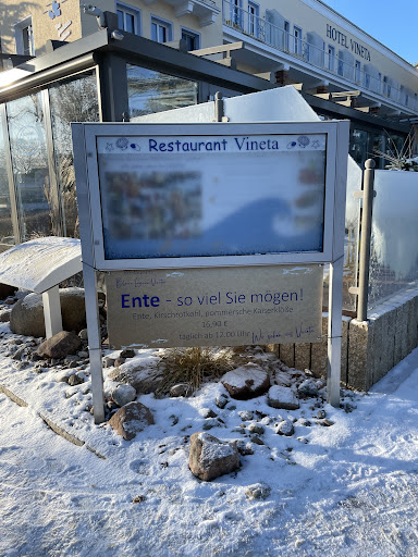 Read moreLiebe Menschen vom Vineta, die Bewertungen hier und die Erfahrung vor Ort machen deutlich, dass ihr etwas ändern müsst: Ihr werbt mit Angeboten (bei uns konkret die Ente), die so nicht korrekt sind. Wir wollten die Ente essen, aber es hieß, das ginge nur mit Reservierung. Ja mei, dann schreibt es doch einfach auf das Plakat. Habt ihr früher auch gemacht. "Bitte reservieren". Zwei Wörter.