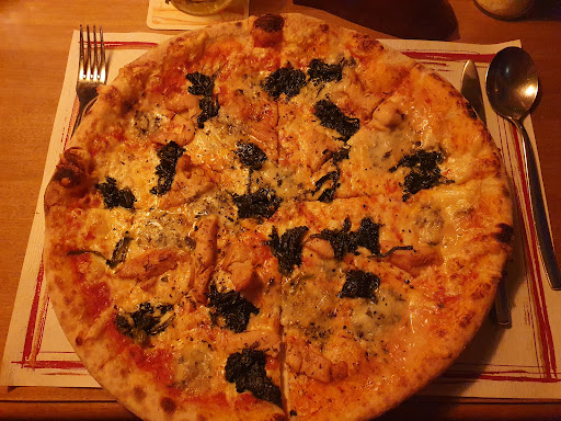 Pizza: standart Steinofen-Pizza, gutes Verhältnisse zwischen Gorgonzola und restlichen Zutaten. Würde ich wieder bestellen.