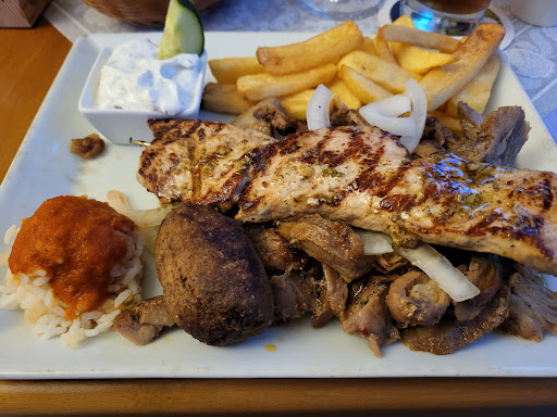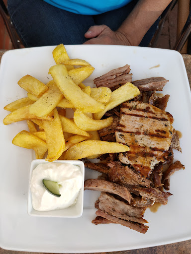Read moreDas Essen ist nicht grundsätzlich schlecht aber entspricht in keinem Fall dem geforderten Preis. Nach einem langen Strandbesuch wollten wir hier zu Abendessen. Wir wurden sehr freundlich empfangen und haben sofort einen Tisch für 6 Personen (davon ein Kind) erhalten. Die Einrichtung des Restaurants ist eher nüchtern mit ein paar griechischen Dekoobjekte. Die Tische sind allerdings nicht wirklich für 6 Personen geeignet. Da die Stirnseiten geschlossen sind kann man da nicht wirklich gut sitzen. Der Vorspeisesalt war lecker auch wenn die sonst typischen Oliven und Peperoni fehlten. Das Knoblauchbrot war nur kurz getoastet und nicht gegrillt. Das Hauptspeisen waren schnell serviert und bestand zum großen Teil aus Fertigprodukten. Bei Kroketten mag das noch in Ordnung sein aber nicht bei griechischen Hackfleischgerichten für rund 18 Euro. Das überbacken Hänchensteak in Metaxasoße war sehr trocken und hat neutral geschmeckt, da es vermutlich unmariniert vorgegahrt wurde. Die Soße selbst war sehr tomatig und hat nicht nach Metaxa geschmeckt. Entweder ein Fertigprodukt oder mit einem anderen Schnaps/Wein zubereitet. Metaxa kann man hier übrigens nicht bestellen, nur Ouzo und der war auch noch warm, lediglich in einem kalten Glas serviert. Einen Ouzo aufs Haus gab es übrigens nicht. Ich selbst hatte einen gemischten Teller mit Gyros und Souflaki. Dazu gab es Pommes und etwas Tomatenreis. Das Gyros hat sehr gut geschmeckt! Die Stücke des Souflaki waren nur leicht gewürzt und tatsächlich gegrillt (mit Röststreifen). Pommes und Reis waren absolut in Ordnung. Die Angestellten waren sehr flink und absolut nett. Alles in allem hatten wir hier einen netten Abend mit mittelmäßigem Essen. Auf der Rechnung standen am...