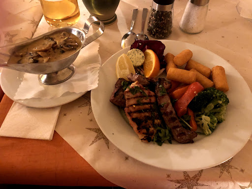 Wir waren mal wieder im „Stella del Lago“ Abendessen und muss nun endlich mal eine Rezession schreiben. Wir wurden sehr freundlich empfangen. Einer der Mitarbeiter brachte uns an unseren Tisch und übergab uns die wirklich gute Speisen-und Getränkekarte. Wir bestellten unsere Getränke und etwas später die Speisen. Alles ging zügig und es wurden auch sehr gern Extrawünsche entgegengenommen. Nach einer kleinen Wartezeit (wegen frisch zubereiteter Pizza und gegrilltem Fleisch) bekamen wir unser sehr ansprechend angerichtetes Essen. Das Auge isst halt mit! 😃 Ich hatte mich für verschiedene gegrillte Fleischsorten mit saisonalem Gemüse, Kroketten und Kräuterbutter entschieden. Zusätzlich habe ich mir noch Rahmchampignons bestellt. Ich bekam auf den Punkt gegrilltes Lammfilet (!!), Schweinefilet und herrlich zartes Rinderfilet. Auch das Gemüse war sehr gut gegart. Es hatte noch Biss und es war deutlich zu erkennen, dass frisches Gemüse verarbeitet wurde und nicht wie weit verbreitet, irgendwelches Tk-Gemüse. Die Champignonsauce wurde aus frischen Champignons gemacht. Alles schmeckte hervorragend. Der Rest unserer Familie hatte verschiedene Gerichte bestellt. Alles von Pizza (aus dem Holzofen) über Fisch und Fleisch bis hin zu Pasta war dabei. Alle lobten die hervorragenden Speisen. Ich war leider nach meinem Essen richtig satt und musste auf eine Nachspeise verzichten. Da war nur noch Platz für einen guten Espresso. Einige aus unserer Gruppe bestellten sich noch ein Dessert und waren auch damit sehr zufrieden. Die Mitarbeiter des „Stella del Lago“ sind ausnahmslos freundlich und arbeiten schnell und umsichtig.