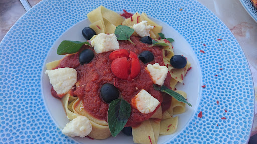 Bei den Hauptspeisen hatten wir drei Mal Pasta und zwei Mal Pizza bestellt. Auch hier wurde nicht alles serviert. Die Pasta mit Tomatensoße war in Ordnung, aber sehr geschmacksneutral. Die beiden anderen Nudelgerichte mit Knoblauch-Ricotta waren absolut geschmacksneutral. Es war keinerlei Knoblauch oder andere Gewürze zu schmecken. Die Pizzen waren sehr trocken und zu lange gebacken. Der Rand war knüppelhart.