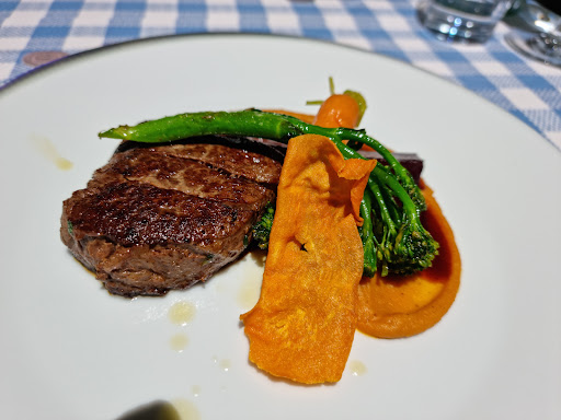 Read moreService top, essen leider flop. Mit Vorfreude hatte ich gesehen, dass das Restaurant noch Weihnachtsgans auf der Karte anbot und bei der telefonischen Reservierung drei Tage im Voraus, wurde mir auch bestätigt, dass sie das Essen dann noch anbieten können. Mit fast 50,- Euro pro Person kamen meine Frau und ich auch mit der Erwartung, ein handwerklich gut gemachtes Essen zu bekommen. Aber leider war das Gegenteil der Fall. Das Fleisch war so trocken, dass es keinen Tropfen Saft mehr abgab und dem entsprechend war es sehr zäh. Der Rotkohl erinnerte eher an Brei als an Rotkohl und hatte keinen Biß mehr. Die Klöße waren trocken und wirkten aufgewärmt. Alles war exotisch gewürzt, aber die Gewürze haben den Geschmack der Zutaten vollkommen überdeckt. Dem Kellner habe ich auch dann unmittelbar dieses Feedback übermittelt. Eine Reaktion vom Haus gab es jedoch nicht. Ansonsten waren die beiden Service-Kräfte freundlich und bemüht. Die im Preis inbegriffene Vorspeise aus Aufschnitt und frischen Brot war dagegen sehr gut und auch der Gruß aus der Küche, den es vorab gab, ließ nicht erahnen, dass das Hauptgericht so ein Reinfall wird. Ich selbst bin seit über 25 Jahren ambitionierter Hobby-Koch und bilde mir ein, die Qualität von Speisen beurteilen zu können, auch wenn Restaurant-Kritik am Ende immer subjektiv ist. Ich möchte mit dem Appell enden, ein Essen nur auf der Karte zu lassen, wenn man es in einer angemessenen Qualität zubereiten kann. Hier hatte ich jedoch den Eindruck uns wurden übrig gebliebene Reste aufgewärmt und serviert. Der Grund beim Ambiente einen Stern abzuziehen, ist das mir die 2er Tische sehr klein erschienen. Der Besuch war...