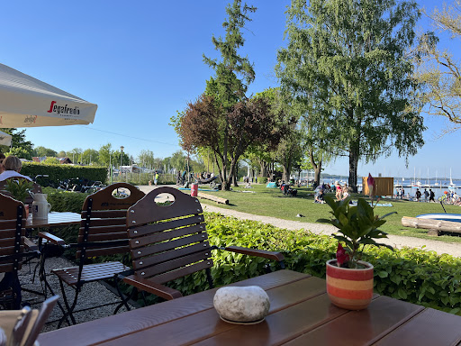 A very nice place to enjoy your lunch after a walk around or swim in the lake, with quite a variety of options to choose, from different types of breakfast, to traditional german dishes and burgers, the latter of which were quite tasty! I would prefer a slightly bigger variety of burgers since they have a specific page-menu for them - a big plus though for the fact that they have a grilled chicken burger! I could feel also that the beef burger could have been a bit more jucier, but still it was tasty enough. The service was quite good even if the restaurant looked rather busy and the staff was very friendly! Prices are also fair given the fact that you enjoy your lunch right next to the lake's scenery. The whole experience was good and thus, its definetely a place...