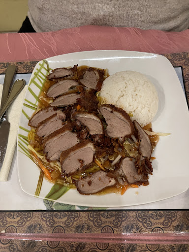 Das Essen war ganz gut aber nicht besonders. Rindfleisch Szechuan war lecker, die Ente Süß Sauer hingegen leider gar nicht. Also geschmacklich durchwachsen und der Service war auch nur mittelmäßig. Irgendwie hat die Dame sich schon bemüht aber gleichzeitig hat sie uns spüren lassen, dass sie gestresst ist und es besser wäre wir würden nur zum mitnehmen holen. Der Laden ist leider ein einziges Chaos und die Toiletten nicht wirklich sauber. Ich denke zum mitnehmen ist es ok da nicht viele Alternativen in der Nähe sind. Aber im Lokal essen würde ich...