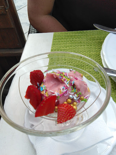 Read moreWir waren Anfang Juni hier anlässlich eines Aufenthaltes im Hotel. Abends auf der Terrasse gesessen. Die Terrasse macht einen ungepflegten Eindruck - Betonkübel noch nicht bepflanzt. Die Tische waren lt. der Hygieneregeln weit auseinandergestellt, Personal trug Visiere. Freundliches Personal, vielleicht etwas zu Jovial. Aber nun gut, dass ist das Konzept. Es gab nur das Spargelmenü (5 Gerichte) , aus dem man aber auch einzelne Gerichte auswählen konnte. Wir nahmen die Spargelsuppe mit Croutons. 500 g regionalen Spargel mit Kartoffeln, Sauce Hollandaise und Fisch und das Dessert Beeren-Panna Cotta mit Obstkompott. Die Spargelsuppe war ohne jeglichen Geschmack, ohne! Spargel, die Croutons aus der Tüte. Im Hauptgericht der regionale Spargel war so lange gekocht (oder sogar aufgetaut?), dass ihm jeglicher Geschmack fehlte, die Kartoffeln Convinience Food ebenso wie die Sauce (es schmeckte wenigstens so). Das Fischfilet war gut gebraten und schmackhaft. Unglaublich war das Dessert: Beeren Panna Cotta gestürzt und zerlaufend (es war eher eine Quarkspeise) auf brauner, stückiger Sauce. Der Kellner meinte erst, das wäre wohl Apfelkompott - auf die Frage, nachdem wir probiert hatten und der Geschmack absolut nicht erkennbar war, da offensichtlich angebrannt, meinte er, das wäre dann wohl Rhabarber. Auf unsere konstruktive Kritik, die wirklich sehr freundlich geäußert wurde, wurde uns erwidert, das würde man gerne an die Küche weitergeben. Nun ja. Das war wohl der letzte Versuch hier. Schade, denn die Umgebung ist toll, das Konzept auch. Auch in Corona Zeiten sollte Wert auf Qualität gelegt werden, wir sind gerne bereit, dafür und für regionale Produkte einen entsprechenden...
