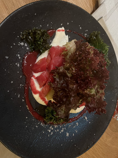 Read moreMomentaufnahme vom 01.08.! Als Gast des Hotels vom Stress des Anreisetages das Angebot im bzw am Haus genutzt. Aufgrund der Tatsache das die gebuchten Zimmer bei der Ankunft uns sehr sehr gut gefallen haben und da im Umfeld mehr zu erwarten war. Registrierung wurde sehr schnell durch die Dame am Empfang gemacht da alle Handys bereits im Zimmer waren. Danke für das Unkomplizierte. Ambiente und Stil sehr angenehm. Der Rest wie gesagt Momentaufnahme vom Tag. Bin mir ziemlich sicher das es besser geht. Getränkekarte kam erst auf Anfrage. Für Kinder da eventuell besser darauf einstellen was da geht. Die Eltern können gut wählen und die Kids gucken einen deprimiett an. Essenkarte ist unsere sache nicht. Es fehlt die Vielfalt an Art der verschiedenen Möglichkeiten. Fisch Fleisch Federn ist meist mittlerweile Standart. Warum das aktuell zudem Zeitpunkt nicht so ist, erschließt sich uns bei dem schönen Ambiente nicht. Sehr schade. Bemerkenswert ist das Kinderanteil auf der Karte typisch Kind ist aber nicht angekommen ist. Stattdessen wurde am ersten Tag zu 18.15 Pizza bestellt. War leider schon aus... Wie gesagt ich glaube das es besser geht, aber halt nicht war. Meine Kombination lauwarmes dünn geschnittenes rosa Roastbeef mit Salat und Bratkartoffeln war allerdings genial. Zufrieden waren...