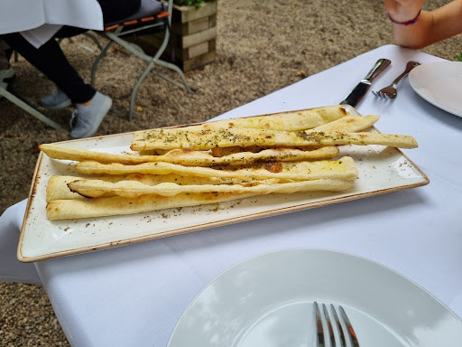 Irgendwann kam die Vorspeise, dazu sollten gleichzeitig selbtgemachte Grissinis gebracht werden. Die Vorspeise stand also auf dem Tisch, Grissinis kommen gleich hieß es. Doch noch hatten wir ja nach wie vor kein Besteck. Als auch nach fünf Minuten kein Besteck kam, sich der Kellner nicht blicken ließ und auch keine Anstalten machte beim abstellen der Teller zu registrieren, dass was fehlt, mussten wir es uns selbst von einem anderen Tisch holen. Die Grissinis kamen gar nicht erst zur Vorspeise sondern irgendwann viel später, eher als Zwischengang (und waren dann noch völlig versalzen), als wir mit dem ersten Gang bereits fertig waren.