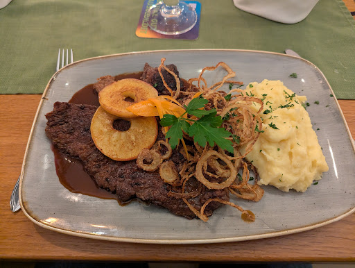 The food was very nicely prepared. The pork medallions with spaetzle was superb. The pepper sauce was very fla ourful, without be over powering. Yes there peppercorns in the sauce. The rumpsteak and croquettes my wife look excellent, and then I got try them. The rumpsteak was cooked to a perfect medium-rare, and was quite tender. The croquettes were nicely crisp on the outside, and moist &...