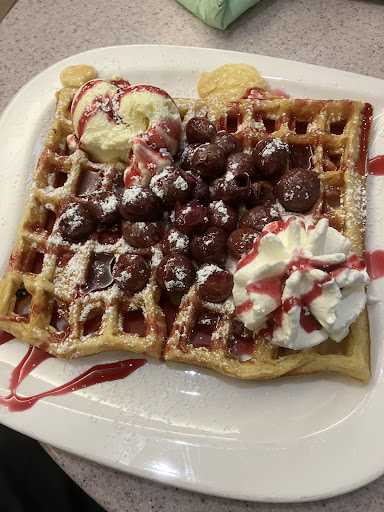 Me and my husband have walked by a few times and decided to grab a bite to eat. We sat in the outdoor seating area, wasn't too busy today. The atmosphere was nice. People out and about enjoy their day. Kids playing at the park. A very nice chill day. The service is very pleasant. Our server was very sweet. I was pleasantly surprised about the drinks :) they weren't too sweet and were delicious. My husband enjoyed the cheesecake and said it was quite yummy. I had the Nutella waffle. It was freshly made. Nice and soft but still a bit crunchy which I personally liked. The waitresses seemed very nice and polite. And the prices werent that bad! Overall, I had an awesome experience and would...
