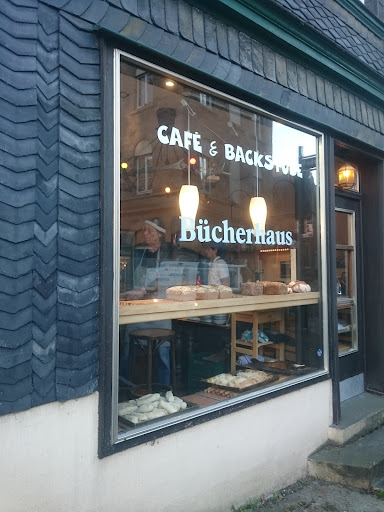 Ja, hier sollte man hingehen. Aber nicht das Bücherhaus bewundern, sondern die Backstube und das Café, was mit der Bücherstube verbunden ist. Denn im Erdgeschoss ist eine wunderschöne, wunderbare Backstube und ein Café untergebracht. Die Backwaren und Getränke sind alle, aus kontrollierten Anbau ( sprich; biologischer Herkunft). Ja, auch das Brot was in dieser Backstube gebacken wird, ist einfach zum Reinbeissen. Ebenso die Pizza und der Flammkuchen, der Boden ist hauchdünn und der Belag, kann nach ihren Wünschen, zubereitet werden, na das ist doch mal was besonderes... Der Bäckermeister ist kein anderer, als Herr Enrique Rosales, von der Biologischen - Bäckerei aus dem Windradter Tal. Also hier lohnt es sich darum um so mehr, einmal vorbeizukommen und sich umzuschauen. Für mich persönlich ist es sehr wichtig, dass es solche Backstuben noch gibt. Die das Brot und viele andere Backwaren mit natürlichen Zutaten backen. Ebenso sind Kaffee, Kakao,Tee sowie alle anderen Getränke biologisch. Sprich aus Biologischer Zertifizierter Landwirtschaft...