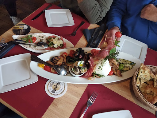 Read moreWenn man mit angemeldeten 6 Personen die letzten drei wackelnden und zusammengeschoben Tische bekommt die dann auch noch mitten in der Einflugschneise der Bedienung stehen, sollte wenigstens das Essen perfekt sein. Es war noch nicht einmal so lala! Bei allen von uns bestellten Pizzen war der Teig nicht durchgebacken, dick und matschig. Gerne hätten wir auch die Burata gegessen, die man später am Nachbartisch servierte. Die und wahrscheinlich noch andere interessante Sachen standen aber auf der Tafel für die Tagesangebote, die man uns nicht gezeigt hat. Vielleicht war aber auch die etwas größere und ziemlich laute Gesellschaft am andern Ende des Raumes viel wichtiger, den dort wurden Speisen serviert, die wir weder auf der Speisekarte noch auf der Tageskarte gefunden haben. Und die hat man auffällig aufmerksam hofiert. Die bisherigen Erfahrungen und Bewertungen kann ich also nicht bestätigen, wir geben unser Geld hier...