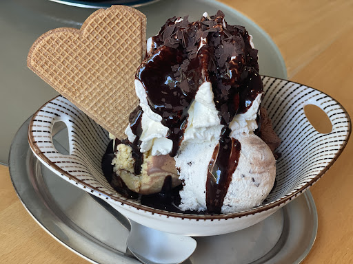 Eigentlich:⭐️⭐️⭐️⭐️⭐️ Eine Eisdiele mit Herz und echter Handwerkskunst! Der Besitzer nimmt sich Zeit für Qualität – man schmeckt sofort, dass hier frische Zutaten und echte Früchte verwendet werden. Keine künstlichen Zusätze, dafür liebevoll kreierte, eigene Sorten. Das Eis sieht nicht nur fantastisch aus, sondern schmeckt auch wunderbar natürlich....