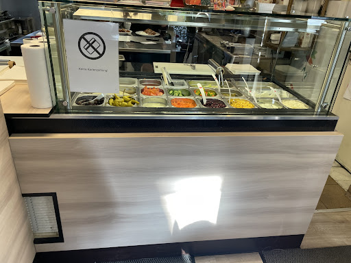 Read moreWir waren zum 2.mal dort. Hatten diesmal Gyros Pizza und Salami Pizza bestellt. Beide Pizzen haben einfach nur salzig geschmeckt, vom Gyros hat man nichts geschmeckt. Service ist null, man muß das Essen selber holen und das benutzte Geschirr bzw. Getränkeflaschen auf einem Tablett wieder reinschleppen 😓. Ich hatte nicht gesehen das es dafür ein Wagen gibt, (beim 1. Besuch hatte mein Mann das Tablett herein gebracht). Ich stand da mit dem schweren Tablett und wurde überhaupt nicht beachtet. Als ich es dann auf die Theke stellte, maulte mich die junge Dame hinter der Theke arrogant und frech an, dass das Tablett in den Wagen kommt. Sie nahm das Tablett mit rollenden Augen 🙄 und trug es mit schlechter Laune in die Küche, hatte wohl zu viel Stress, die gute. 🤣 Als Sie wiederkam bezahlte ich ohne Trinkgeld zu geben 🤭 und Sie knallte mir das Rückgeld auf die Theke, so viel zum Thema Service. 🫤 Ein Gyrosteller kostet 12,50€. Bekomme ich bei fast jedem anderen Griechen auch zu diesem Preis, aber mit BEDIENUNG. 💪Getränkepreise sind auch zu teuer, für 0,33l 3,20€ aufwärts. Mit Karte kann man auch nicht zahlen, wird schon seinen Grund haben.🤨🤔 Es kommt auch keiner raus und macht mal die Tische sauber, wenn ein Kunde...