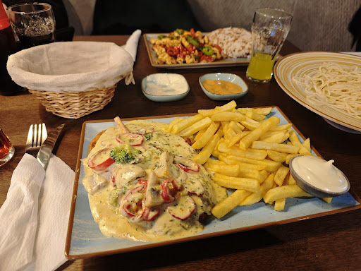 Die Preise sind es allerdings, die diese Bewertung noch einmal deutlich erhöht haben, denn während das Essen durchaus einfache Restaurant-Qualität erreicht, sind die Preise auf einem Imbiss-Niveau. Auf meinem Bild sieht man beispielsweise vorne an das Pizza Prinz Schnitzel mit Pommes und Mayo und es hat keine 15€ gekostet (ich glaube es waren 13,90€).