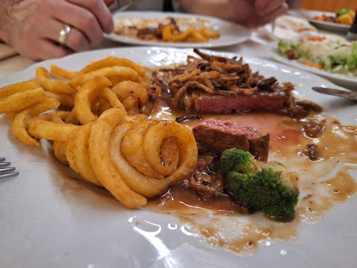 Read moreWir waren dort schon voele mahle und haben immer gut gegessen nur dieses mal wsr es wirklich schlecht. Bedienung war mit der bestellung vollkommen überfordert und hat auch nicht richtig zu gehört was wir wollten. Die suppen waren sehr gut und dann gings an. Der weitlerteller wurde als erstes serviert . Dieser war so weit ok bis auf das von 4 stücken fleich 2 zäh und total trocken waren. Erst etwar 20 min kahm ein zwiebelbraten den wir nicht bestellt haben und zurück ging. Während andere die nach uns kahmen bereits ihr essen serviert bekahmen kahmen dann weitere 10 min später 2 von 3 bestellten zwiebelrostbraten. diese warrn aber weder mit den von uns imbestellten pommes noch mit den in der karte stehenden cauntry potstos sondern mit curky frise versehen. Da eir nicht noch länger warten wollten haben wir das essen angenommen. Dann gings los. Wir haben unser fleisch medium rare bestellt und bekommen haben wir 1x medium well und 1x well zu dem warh es sehr fest und nicht zart. Die sosse schmeckte wie für einen wikdbraten was so garnicht zu einem steak passt und die zwiebeln waren sehr dunkel. Wir habe dann nur das gemüse und das fleisch so weit es ging gegessen. Nach weiteren 10 min kahm dann endlich der 3te zwiebelrostbraten komischer weise der dann aber mit pommes und im gewünschten gargrad , was das fleisch allerdings nicht zarter machte und die pommes waren lauwarm und zäh. Schade das es so nach...