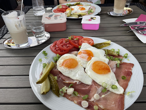 Read moreWir waren heute (10.00 Uhr) dort frühstücken. Ich bestellte 2 halbe Brötchen mit Butterkäse und einen Cappuccino mit Sahne. Da drinnen alles besetzt oder reserviert war, saßen wir draußen...erfreulicherweise gab es dort pro Stuhl eine Fleecedecke. Das Frühstück kam zuerst und ziemlich schnell, war aber leider eine Enttäuschung, denn das Brötchen war ziemlich kleine (geschätzt 65 gramm Version) und der Käse war ein Emmentaler. Geschmacklich leider gar nicht mein Fall reklamierte ich bei der Bedienung, die mir zur Antwort gab "Butterkäse ist keiner mehr da" Auf meinen Einwand, dass ich dann wohl belaglos essen müsste, entschied sie sich doch noch mal in der Küche zu fragen...20 Minuten später kam die mutmaßliche Chefin, der ich mein Anliegen nochmal vortragen durfte. Sie bot an einen Umtausch vorzunehmen, aber frecherweise hatte ich meine beiden Brötchenhälften schon vertilgt...den Käse abgekratzt. Auf meinen Hinweis "Naja, ich hab vor gut 20 Minuten reklamiert und dann ohne Belag gegessen, weil niemand mehr kam" antwortete sie "na, das ist ja toll" und ging weg...danach würdigte sie mich keines Blickes mehr...kein Angebot der Wiedergutmachung, kein Nachfragen nach anderen Wünschen...bezahlt hab ich dann 2€ für ein Brötchen vom Bäcker nebenan mit Butter plus 4€ für einen viel zu kleinen Cappuccino, der übrigens kalt war, weil das Verhältnis Sahne zu dem Fingerhut voll Cappu nicht gepasst hat.