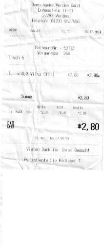 Read moreSchade, dies schöne Restaurant hätte eine bessere Küche verdient. Ich bin gebürtiger Verdener und habe dort früher, alleine und in Gesellschaft, oft und gerne gegessen. Nun diese Enttäuschung! Gestern wollten meine Frau und ich dem nun nicht mehr ganz neuem Betreiberteam die Chance geben zu zeigen, in wie weit die gute Tradition fortgeführt wird. Meine Frau nahm ein vegetarisches Gericht: Selma-Kartoffel. In gänzlich geschmacklosem Sahnesumpf waren grobe Kartoffelstücke (Drillinge?), Champignons und Walnüsse (?) ertränkt und mit Käse überbacken. Dem "Kräuterrahm" fehlten die Kräuter und meiner Frau die Worte, dieses Desaster angemessen zu beschreiben. - Ich nahm das Calvados-Hähnchen, den Klassiker der Domschänke. Die Hähnchenbrust war extrem trocken (im Internet gibt es Tipps, wie man das verhindert), der gräulichen "Apfel-Calvados-Kräutersoße" fehlten nicht nur die Kräuter (Estragon würde gut passen) und die "gebackenen Kartoffelspalten mit Honig und Sweet Chili" machten optisch einen guten Eindruck, die Konsistenz spiegelte dies jedoch nicht und erwies sich als süßer Matsch. Und der "Espresso"? Biel Wasser, wenig Bohne ... Wir saßen bei herzlichem Spätsommerwetter auf der besonnten Terrasse, sodass uns die Yucca Palme in einem schwarzen Plastiktopf, die schon bessere Tage gesehen hatte, das vertrocknete Kraut in einer schönen Pflanzschale und die phantasielose Tischdeko, junger Rosmarinzweig in Plastiktopf, nicht weiter...