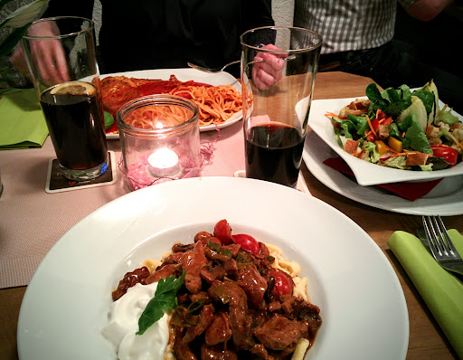 Read moreWir besuchen das Restaurant seit Jahren immer mal wieder. Bisher waren wir auch immer sehr zufrieden. Gestern wurden wir dann doch ziemlich enttäuscht. Die Qualität des Essens ist wirklich sehr gut und daran kann man nicht meckern. Alles frisch und aus guten Zutaten zubereitet. Aber die Portionen waren sehr enttäuschend! Die Karte ist nicht groß und an vegetarischen Gerichten gibt es keine allzu große Auswahl. Ich bin Vegetarierin aber bin mit der Auswahl trotzdem zufrieden. Aber die Portionen, auch die der Fleischesser am Tisch, waren wirklich lächerlich. Aber vor allem die vegetarische Portion sollte halt schon auch satt machen. Dies war nicht der Fall und ich hatte vorab schon einen Haussalat. Da erwarte ich eigentlich schon dass ich satt bin nach dem Hauptgericht aber Fehlanzeige. Habe dies auch beim Abräumen mitgeteilt. Es kam nicht mehr zur Antwort als ein Danke für die Anmerkung und dass es in die Küche weitergegeben wird. Kein Bedauern oder gar Angebot dass man mir vielleicht noch etwas nachbringt und sei es nur eine Beilage oder etwas in der Art. Ich bat nochmal um die Karte um zu sehen ob ich mir noch eine Kleinigkeit bestellen kann aber es gibt keine Kleinigkeiten oder Snacks auf der Karte. Also bestellten wir alle nur noch einen Nachtisch aber auch mit dem hatte ich kein Sättigungsempfinden und auch die anderen am Tisch nicht. Ich verließ schließlich das Lokal nicht satt und aß zu Hause noch Toast mit Käse. So schnell gehen wir hier wohl nicht mehr essen. Denn 13,80 € für ein paar Nudeln mit einer sahnigen Soße, Paprika und Oliven in Portionsgröße einer Vorspeise sind es mir definitiv nicht wert....