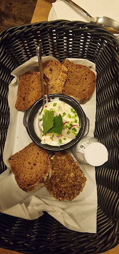 Als ein Tisch frei wurde, nahmen wir diesen ein und es ging nun ums Essen: Vor der Tür befindet sich vom Umfang eine sehr ansprechende Speisekarte, die auch den vielgepriesenen Rostbraten enthält. Auf dem Tisch flatterte ein simpler Zettel in schwarz-weiß, der sich "Qicklunch" nennt. Auf diesem fanden sich, beginnend mit dem Beilagensalat und einer Suppe, vier weitere simple Wochen- sowie zwei Tagesgerichte für jeden Wochentag, wovon eines wiederum ein Salat war. Etwas erstaunt über den mageren Umfang dieses Zettels, bat ich darum die Hauptkarte zu bekommen, um aus dieser zu wählen. Als forsche Antwort darauf bekam ich mit einem Fingerzeig auf den Zettel: "Jetzt gibts nur das!" Die ungewöhnliche Zusammenstellung des Pfannkuchen mit Gemüsefüllung und Salat (?!?!) übergehend, entschied ich mich dann eben für ein simples Schweinerückensteak mit Sauce, allerdings mit der Bitte anstatt der angebotenen Salzkartoffeln eine andere Beilage zu erhalten. Dies wurde mit einem noch viel forscheren "Es gibt alles nur so, wie es auf der Karte steht!" quittiert. An diesem Punkt verzichtete ich dankend und mit knurrendem Magen auf ein Essen in diesem Lokal und befasste mich fortan mit dem Gedanken, wo sich in der Nähe der nächste Imbiss mit üppiger Auswahl und flexibler Menuegestaltung befindet. Offensichtlich scheint der Koch des Lokales aus der Systemgatronomie zu stammen, der nicht in der Lage ist, flexibel á la Carte zu kochen, sondern nur ein gewisses Kontingent an (im Konvektomat?) vorbereiteten Speisen auf den Teller zu klatschen.
