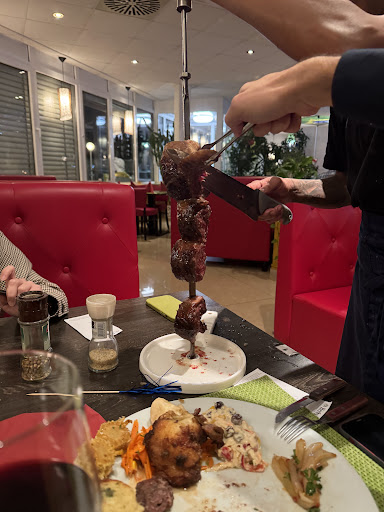 Read moreLeider kann ich das Essen dort nicht empfehlen. Wir hatten einen Abend vorher für 2 Personen reserviert. Als wir ankamen hieß es wir sollen 10€ Eintritt bezahlen, da heute Live-Musik sei. 10 € bezahle ich übrigens in Clubs in Stuttgart. Ich meinte dann, dass man mir am Telefon nichts gesagt habe und der Anruf war einen Abend zuvor. 10€?! In Restaurants sollte das nie ein Thema sein. Schließlich soll das ja Gäste wieder anlocken und sie nich abzocken. Wir dachten wir geben dem Ganzen eine Chance, wir sind ja auch deswegen extra gekommen. Zum Personal: Einige sprechen nicht so gutes Deutsch, andere schon. Das erschwert es bei Fragen oder Wünschen/Bestellungen. Manche Bedienungen hatten nicht wirklich Lust auf ihre Arbeit. Das hat man leider am Gesichtsausdruck gemerkt. Andere hingegen schon: Ein Mann, etwas älter, mit Zopf war sehr freundlich! Zum Buffet: Ein Desaster. Ein anderes Wort kann ich dafür nicht finden. Die Beilagen waren kalt und lätschig. Für einen Strammen Preis von 36€ und ein paar zerquetschten Erwarte ich einfach frische Beilagen. Das Zeug wurde bis wir gingen nicht ein einziges Mal ausgetauscht oder aufgefüllt. Ich fand es traurig, dass nichts ausgeschildert ist und man nicht weiß was man da nimmt, bis man reinbeißt. Dadurch verschwende ich auch als Gast einiges an Essen, da mir bestimmte Dinge nicht gefallen und ich sie auch nie nehmen würde - Sie sind aber im Buffet irgendwo frittiert und unerkennbar. Ich wollte ja auch die Esskultur kennenlernen. Aber wenn ich nicht weiß, was es ist? Außerdem muss ich sagen, dass manche Dinge schon ungewöhnlich gewürzt sind. Der Gurkensalat hat nach Zucker geschmeckt? Das Personal lief abwechselnd mit unterschiedlichen Spießen herum. Da sollte das Timing besser gemanaged sein. Das Fleisch kam so schnell an die Tische, dass wir gar nicht mehr hinterherkamen und die Teller irgendwann auch voll gewesen sind. Irgendwann mussten wir auch ständig nur noch ablehnen, was zeitweise etwas nervig ist, wenn ein Gespräch ständig unterbrochen wird. Geschmacklich hat mir davon leider nur eines wirklich geschmeckt. Der Rest war entweder zähes Fleisch oder war mit Gewürzen überzogen, die uns einfach nicht zugesagt hatten. Am schlechtesten fand ich die Würstchen. Zur Live-Musik: Diese war viel zu laut, man konnte sich ab dem Zeitpunkt nicht mehr wirklich unterhalten. Außerdem war die Live-Musik im hinteren Teil des Restaurants. Vor der Live-Musik war eine kleine Tanzfläche und um diese herum eine Tischreihe in einer U-Form. Dort saß anfangs niemand. Wir fanden es zunächst erst seltsam, da das (vielleicht zu 50%?) gefüllte Restaurant im vorderen Teil des Restaurant saß. Irgendwann kamen einige Gäste in ganz weiß gekleidet. Teilweise standen sie vorne am Eingang direkt im Weg und machten dort Sektempfang. Der Platz war beengt und um ehrlich zu sein, hätte ich mir gewünscht, dass der Besitzer sie einfach zu Tisch bittet. Die standen da ewig und haben sich auch nicht bewegt, wenn man mal zur Toilette musste. Später haben sich dann in diese Tischreihe in U-Form gesetzt. Direkt vor der Live-Musik. Ehrlich gesagt kam es mir so vor, als hätte ich als Gast deren Live-Musik für ihre Feier am Ende bezahlt.