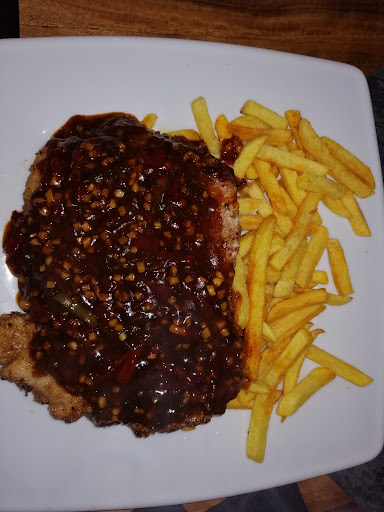 Dann haben wir um kurz nach 18 Uhr unser Essen bestellt und nach einer Stunde war es da. Die Karte ist sehr überschaubar und im großen und ganzen sind sich die Gerichte ähnlich. Das wir für einen Salat mit Schnitzel streifen, 2x Panierte Schnitzel und eine Curry Wurst so lange warten mussten, ist für mich nicht verständlich!!!! Ah und für die Bratensoße bei einem 20,90€ Schnitzel wollten die extra Kohle!