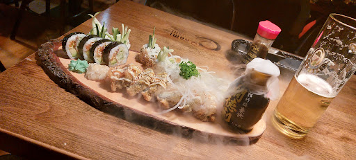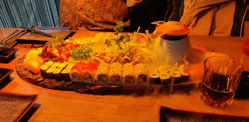 Sehr schöne kleine Sushi Bar mit gemütlichem Ambiente. 5 Sterne wenn asiatische Hintergrundmusik laufen würde statt RnB. Dann würde man komplett die Zeit vergessen und sich wie in Japan fühlen. Service war sehr aufmerksam, schnell und freundlich. Hier gibt es nichts auszusetzen. Haben uns sehr wohl und willkommen gefühlt. Sushi hebt sich komplett vom gewohnten Fertigsushi beim Chinesen ab und wird mit frischen Zutaten täglich frisch zubereitet. Die Auswahl ist riesig und man fühlt sich erstmal erschlagen von der Auswahl. Eine Gute Menü Auswahl macht es dann aber wieder leicht von allem Probieren zu können. Aufgrund der Verfügbarkeit ist es natürlich kaum möglich den Umfang und die Qualität eines Sushis in Japan zu erreichen. Für Deutschland aber trotzdem perfekt. Vorspeise sind überschaubarer aber bietet alles was man sich wünscht. Desert haben wir nur überflogen da wir mit Vor- und Hauptspeise bereits stehen waren, hatte aber auch einiges typisches japanisches und Asiatisches zu bieten. Das Essen war hervorragend und sehr köstlich. Angerichtet mit Trockeneis für den zusätzlichen Effekt waren wir komplett begeistert und haben keinerlei Kritikpunkte gefunden. Selbst Lebensmittel die man nicht so mag waren sehr lecker. Eine Empfehlung sind die selbstgemachten Limonaden. Einfach Umwerfend. Für eine Sushibar sind die Preise sehr günstig. Pro Person um die 30 Euro. In anderen Lokalen hatte ich schon 90 Euro pro Person für Sushi bezahlt. Hier werde ich zukünftig öfters...
