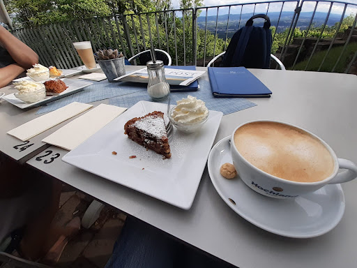 Read moreDie Aussicht ist wirklich einmalig und es könnte eine wunderbar chillige Location sein. Leider hatten wir am Tag des Besuchs Unglück mit der Bedienung. Obwohl das Lokal um 19h schließt wurde man um 18h von der Dame damit begrüßt, dass die Küche schließt. Ob es noch Kuchen zur Sahne gäbe, müsse sie noch schauen. Man hatte den Eindruck, als ob man sie vor dem Feierabend störe. Die einzelnen Gäste wurden an die jeweiligen Tische platziert und durften sich diese nicht frei aussuchen. Es fühlte sich an, wie in einer Amtsstube. Servietten wurden nur widerwillig ausgehändigt.Die Kuchen waren vermutlich hausgemacht, aber von der Größe eher in Richtung Miniatur und der Geschmack ausbaufähig. Mehrere Besucher mit denen ich dann auf der Aussichtsplattform ins Gespräch kam, haben die Dame als unangenehm empfunden. Schade. Der Ort hätte mit anderem...