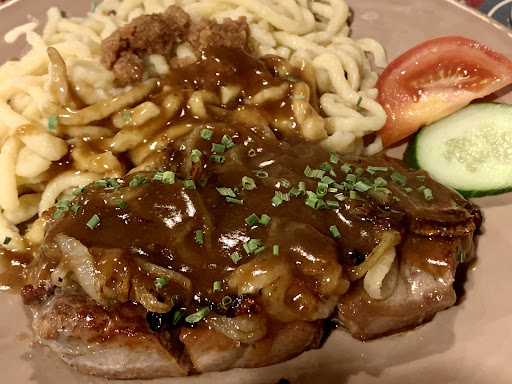 Read moreWir waren auf der Durchfahrt und haben zwei Schnitzel bestellt. Der Salat war gut, die Pommes auch, aber die Schnitzel konnte man leider nicht essen, da sie extrem nach Schwein geschmeckt haben. Dieser sogenannte „Eber Geschmack“ welcher entsteht wenn ein Tier nicht richtig geschlachtet wurde bzw. nicht gleich tot war und noch Adrenalin ausgeschüttet hat, dass sich dann im Fleisch absetzt. Gut, dafür können die Betreiber nichts, sondern eher der Schlachter. Möchte es aber dennoch mitteilen. Was ich auch noch anmerken möchte ist, dass drei Schnitzel für 15,- Euro nicht mehr zeitgemäß sind. Es sollte mehr auf die Qualität anstatt nur auf die Quantität geachtet werden. Lieber ein gutes Schnitzel mit Pommes als...