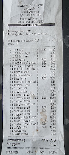 Read moreVorab, wir waren 9 Personen und hatten um 18.30 ein Tisch reserviert die wir auch gleich zugeteilt bekommen haben. Die Bedienung fragte uns nach den Getränken. Wir sagten wir wollen Rakı und dazu gleich Vorspeisen bestellen. Da meinte die Dame sie ist nur für Getränke zuständig. Also sagten wir ihr das sie uns den Kellner schicken soll der die Speisen aufnimmt. Um 20.00 Uhr kam er endlich nach etliche Male Aufforderung. Als er endlich kam, erläuterten wir das wir die Vorspeisen schon längst bestellen wollten. Da sagte man zu uns wortwörtlich: "wenn wir schnelles essen wollen dann sollten wir zum McDonald's" also ehrlich sowas sagt man doch nicht. Wir bekamen unser Essen mit Abständen von 30 Minuten und kurz vor 22 Uhr kam endlich das letzte Gericht. Hatten wir kein Geburtstag gefeiert waren wir schon längst gegangen. Wir haben zusammen 350 Euro liegen gelassen. Unter service verstehe ich wirklich was anderes. Die Gerichte waren wirklich top aber für das Essen 2 Stunden warten und dann solche Argumente bringen wie McDonald's usw geht gar nicht. Es war leider eine schlechte Erfahrung. Wir kucken uns nach einem anderen Griechen um. Wirklich sehr schade. Eine Flasche Wasser für 5.10€ ist schon heftig. Die Flaschen waren auch geöffnet und waren in so ner art Karaffe drin. Wir vermuten es war Leitungswasser. Absolutes No-Go. Nie...