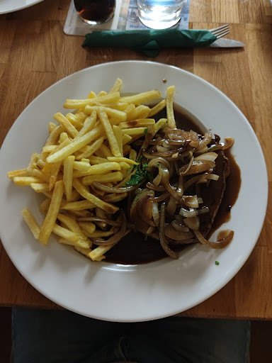 Read moreDas erste Mal dort gewesen und dabei wird es wohl auch bleiben..😬 Zwiebelrostbraten mit Pommes bestellt plus Beilagensalat. Salat geschmacklich okay aber die Karotten und Gurken waren einfach viel zu grob. Das war ein richtig dicke Stifte anders wie man es von einem schwäbischen Restaurant gewohnt ist. Der Hauptgang kam über eine Stunde später, was teilweise auch schon zu schlechte Laune führte😤😤 Der Zwiebelrostbraten mit Pommes war okay, wobei ich am Anfang dachte dass das Messer stumpf sei.. der Gargrad wurde sehr gut getroffen aber das Fleisch war einfach nur zäh. Da habe ich echt schon bessere gegessen ☝🏼 Beim Verlassen des Restaurants haben wir gesehen dass es noch zwei andere Tagesessen gab die nicht auf der Tageskarte hinterlegt waren und es wurde auch nicht auf diese zwei Gerichte hingewiesen was auch sehr sehr schade war.. 🤷🏻 wird höchstwahrscheinlich bei dem einen Besuch...