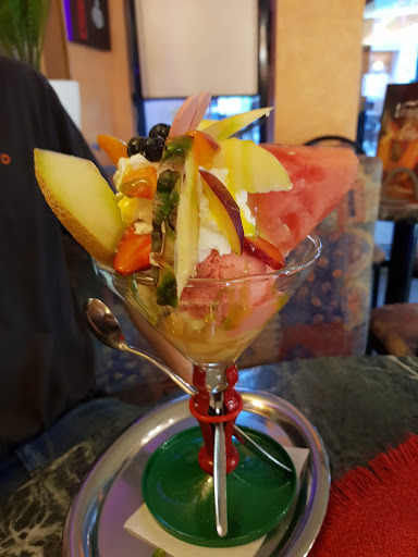 Eis geschmacklich sehr überzeugend. Nicht zu süß und sehr fruchtig. Ich würde auf selbstgemacht tippen. Ebenso war das Eis nicht unnatürlich aufgetürmt in der Auslage.