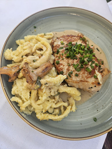 Read moreEin nettes Lokal, gemütlich. Das Essen ist gut, aber nicht so gut, dass es die sehr gewagte Preisgestaltung rechtfertigt. Ein Zwiebelrostbraten ist natürlich etwas besonderes, aber 26 Euro dafür zu berechnen, ohne Beilage (außer Brot, hm), und wenn man eine kleine Schüssel Spätzle dazu nimmt, sind es fast 30 Euro, ist schon schwer nachvollziehbar. Kein Salat dazu, wäre eine Extraspeise und noch teurer. Was auch irritiert: ohne in die Speisekarte geschaut zu haben, wurden wir regelrecht gedrängt, vorab etwas zu trinken zu bestellen - ohne die Getränkekarte gesehen zu haben. Es gibt nur eine Weinkarte. Die alkoholfreien Getränke werden nicht aufgelistet - warum? Man bestellt sein Wasser, das uns wie gesagt wirklich mehr oder weniger unhöflich aufgeschwatzt wurde, und seine Saftschorle, ohne die Preise zu kennen. Ich finde das borniert. Ehrlich gesagt war die Bedienung auch erst so recht freundlich, als es and Bezahlen und Trinkgeld geben ging. Ich ging letztlich mit einem schalen Gefühl raus. Nun wird geantwortet: es gäbe eine Getränkekarte. Ich habe danach gefragt, und es wurde mir explizit gesagt, dass es keine gibt. Was denn nun? Ich habe eben sehr wohl vor Ort gehandelt. Das hat mit Sonne oder nicht nichts zu tun. Und klar, es war voll, aber freundlich wurde es wirklich erst...