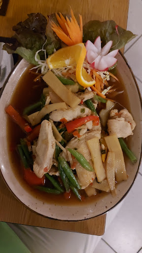Read moreBeim Betreten des Restaurant wird man freundlich empfangen. Die Speisekarte ist in einem Schneidebrett integriert. Und lässt dem Gast bei jeden Essen seine eigene Variante offen welches Fleisch oder Fisch er als Komponente wählt. Genauso welche Schärfegrad das Gericht besitzen soll. Optisch ist das Essen mit viel Leidenschaft garniert. Und geschmacklich hat mich die Suppen sowie Hauptgericht sehr überzeugt. Das Personal ist sehr freundlich und aufmerksam. Wer jetzt ein authentisch asiatisches Ambiente erwartet, wird jetzt enttäuscht sein. Doch das hat mich nicht gestört. Die Tische besitzen eine schöne Dekoration mit Blumen und einer Flaschenlampe. Für mich ist das Asiatisch anmutende Ambiente zweitrangig. Preisleistung steht für mich im Vordergrund und wird hier auch voll erfüllt. Sehr stimmiges Konzept. Für mich ein Grund an diesen Ort ...
