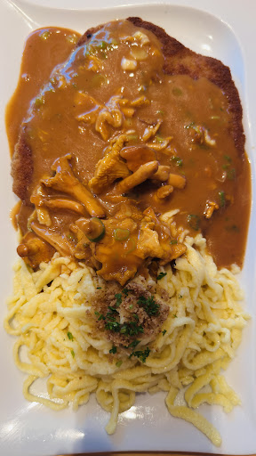 Read moreWir waren Montags dort und hatten zum Glück reserviert. Es gab Schnitzel in allen Variationen und dazu noch eine Speisekarte,die einem die Auswahl echt schwer gemacht hat. Obwohl bis zum letzten Platz ausgebucht wurden wir sehr freundlich empfangen. Schon nach wenigen Minuten wurden wir bedient - ein Lob an die freundlichen Servicekräfte ,die flink und nett alles aufs Beste gemanagt haben. Das Essen war super - einmal Schnitzel und einmal Spinatklöße mit Pfifferlingen. Wir haben uns noch ein Dessert gegönnt und sind auch da nicht enttäuscht worden.