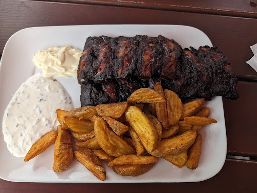 Read moreEssen war so lala, relativ wenig. Preise nicht angemessen! Billige Zutaten. Z. B. Currywurst ist eine mit Wasser aufgeschwemmte nach nichts schmeckende matschige Stange. War alles schon öfters so. Eine Freundin hatte bei einem gemeinsamen Besuch den Chef zur Mitarbeiterin sagen hören, dass zu viel Kartoffelsalat auf den Teller sei, sie solle weniger drauf machen. "Clever", Boss, das direkt vor einer Kundin zu sagen... Bestellsystem online inklusive Zahlung über PayPal ist eine super Sache, dass gefällt mir. Ungut jedoch, wenn das gewünschte Produkt (bei mir ein bestimmtes Bier) nicht vorrätig ist und man nicht Bescheid bekommt. Nach langer Trockenzeit bin ich also eigenständig zur Theke und habe diese Info bekommen. Wäre ich nicht aufgestanden, hätte ich bis Feierabend auf meine Abholinfo auf dem Handy warten können.