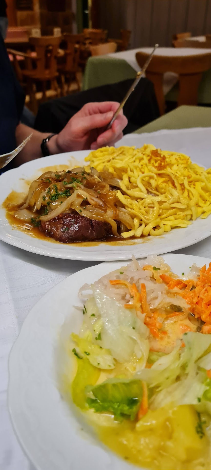 Aufgrund von mündlichen Empfehlungen mit meinem Mann das Lokal aufgesucht. Schon die Begrüßung ließ nichts Gutes erwarten. In schroffem Ton wurde uns ein Platz zugewiesen, die Speisekarte auf den Tisch gelegt und nach den Getränkewünschen gefragt. Auf den Hinweis dass dies vom Essen anhängen würde reagierte die Bedienung recht schroff. Bestellt wurden dann eine Maultaschensuppe und 2 Rostbraten. Die Maultaschensuppe wurde sehr schnell geliefert - fast gleichzeitig mit den Rostbraten und den Salaten. Die Suppe bestand aus 2 Maultaschen und Brühe - diese mit sehr viel Zweibeln versetzt. Gaumenfreude ist da nicht aufgekommen - nicht mal der Begriff "handwerklich in Ordnung" kam uns in den Sinn. Aber es gab ja noch die Salate und die Rostbraten. Die Salate kamen direkt aus Sibirien - total kalt (also aus dem Kühlschrank). Doch - oh Wunder - das Geschmackserlebnis der Rostbraten war wirklich einzigartig. Der eine Rostbraten total durchgebraten - der andere innen noch halb roh. Und das Fleisch hatte insgesamt schon bessere Zeiten gesehen - auch geschmacklich. Einfach ranzig! Beim Abservieren wurde die übliche Frage gestellt "hat es geschmeckt?" Die verneinende Antwort wurde einfach ignoriert und das gesamte Essen wurde in Rechnung gestellt. So sind wir das Essen in der Region nicht gewohnt - es wird bei diesem einmaligen...