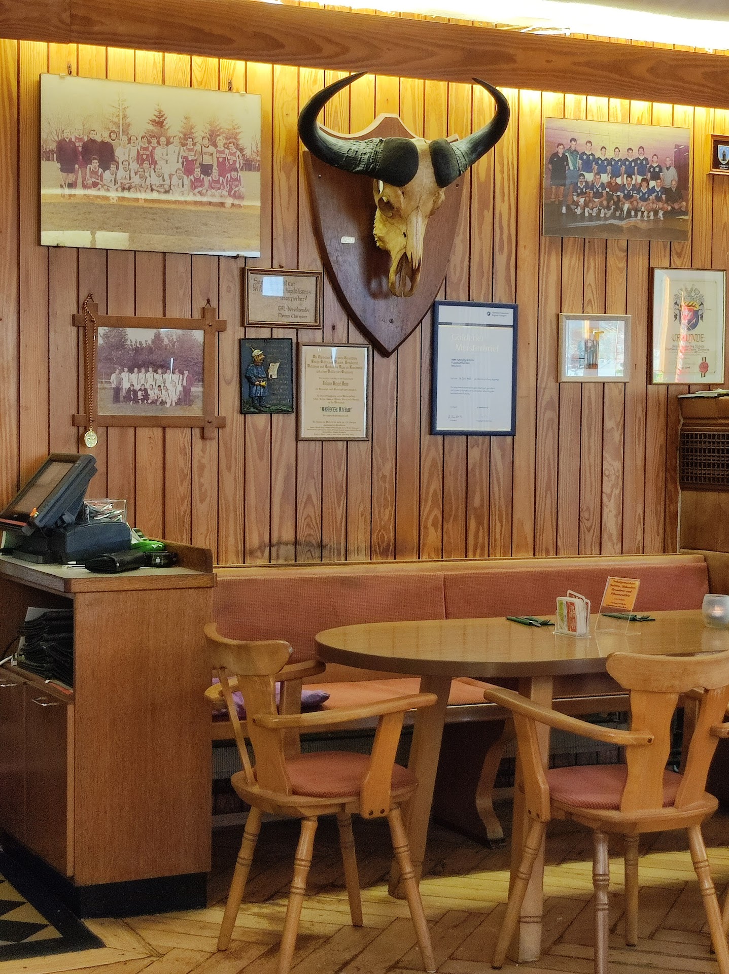 Read moreLeider keine gute Erfahrung. Zunächst fehlte ein Stuhl trotz vorhandenem Gedeck und vorab mitgeteilter, reservierter Gästezahl, der mir auf meine Bitte kommentarlos unfreundlich mitten in den Raum vor die Nase gestellt wurde. An den Platz stellen musste ich ihn dann selbst. Die Getränkebestellung wurde falsch ausgeführt. Aber statt sich zu entschuldigen und das Richtige zu bringen, sollten wir dann die Getränke nehmen, die gebracht wurden. Mineralwasser wurde mit Sprite verwechselt und dem falschen Gast hingestellt. Für Vegetarier gab es keine Auswahl. Das Fleisch des bestellten Rostbratens war ein undefinierbares Etwas. Sollte das wirklich Rindfleisch gewesen sein? Bezahlung mit EC-Karte war nicht möglich, eine Rechnung wurde mir auf meine Bitte hin nicht ausgestellt. Es wurde darauf bestanden, dass ich zur Sparkasse gehe, deren Ort ich von Passanten erfragen musste, dort mit Zusatzkosten, da nicht Hausbank, das erforderliche Geld abhebe und bar bezahle. Ich fühlte mich, als ob ich beabsichtigte, die Zeche zu prellen. Nie wieder. Mein Geburtstagsessen hatte ich mir definitiv anders...